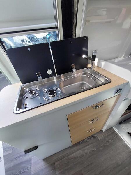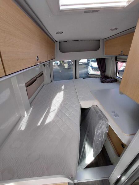 Ce modèle mesure environ 5,57 m de long, 2,07 m de large et 2,60 m de haut, ce qui lui permet de rester facile à manœuvrer, même en ville. Il accueille généralement 4 personnes en places carte grise et propose 2 à 3 couchages grâce à une configuration bien pensée. En outre, il est souvent équipé d’un moteur diesel Renault Master d’environ 135 à 150 chevaux, assurant une conduite agréable et une bonne tenue sur route, même chargé.