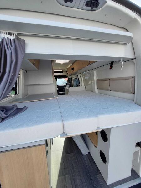 Le Font Vendôme Master Van Duo est un fourgon aménagé compact et polyvalent, idéal pour les couples ou les petites familles qui aiment voyager sans compromis. Basé sur le châssis du Renault Master, il combine fiabilité mécanique et espace de vie optimisé, ce qui en fait un choix solide pour les aventures quotidiennes comme pour les grands voyages.