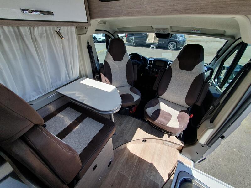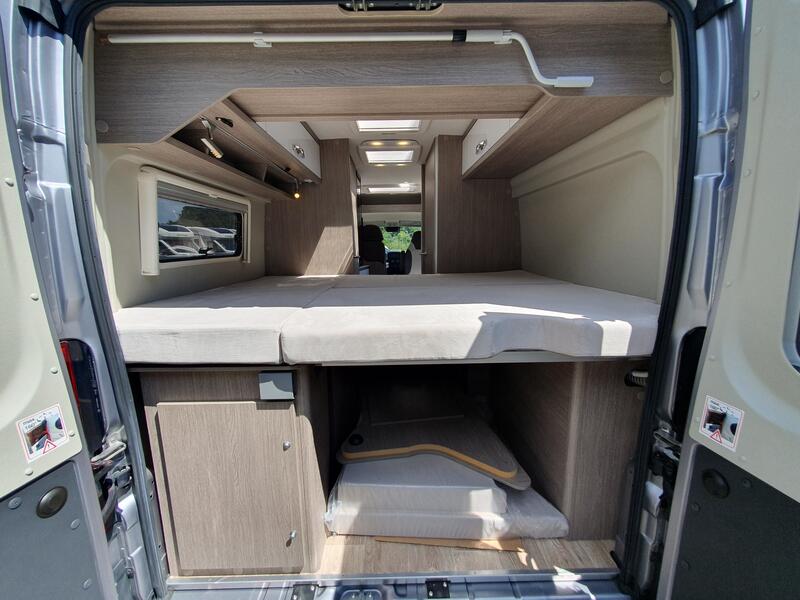 De plus, les baies latérales apportent une belle luminosité naturelle. Les rangements en hauteur permettent de garder un intérieur bien organisé tout au long du voyage.
