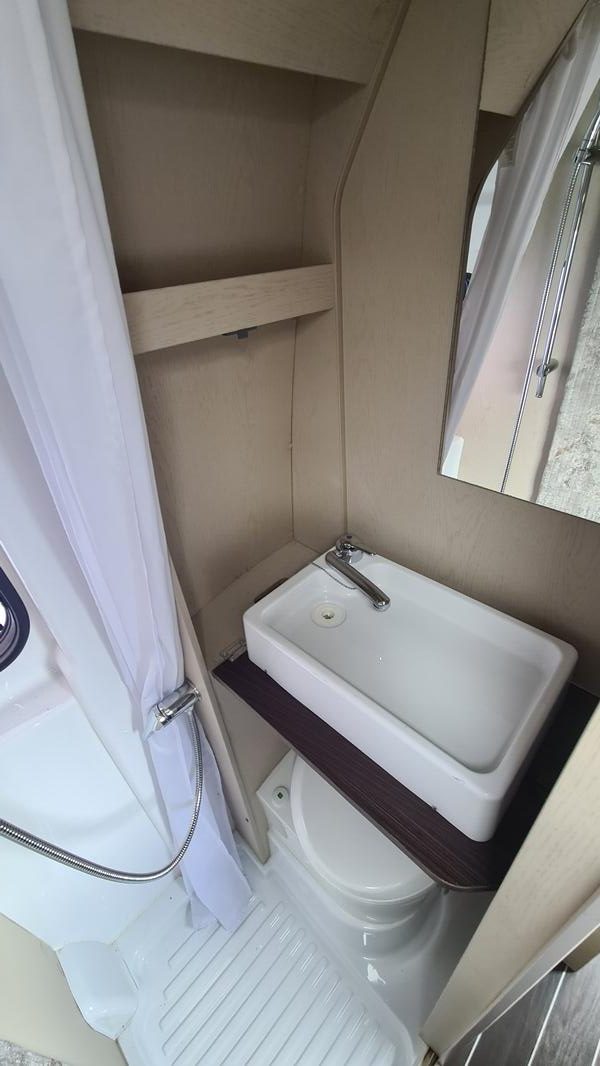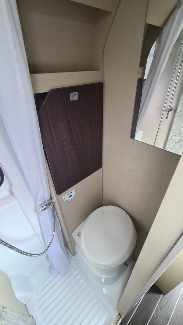 Le fourgon intègre une salle d’eau compacte avec douche, lavabo et WC. Ainsi, les occupants profitent d’une bonne autonomie, même hors des aires équipées. En complément, de nombreux rangements répartis dans le véhicule permettent d’organiser facilement les affaires personnelles.
