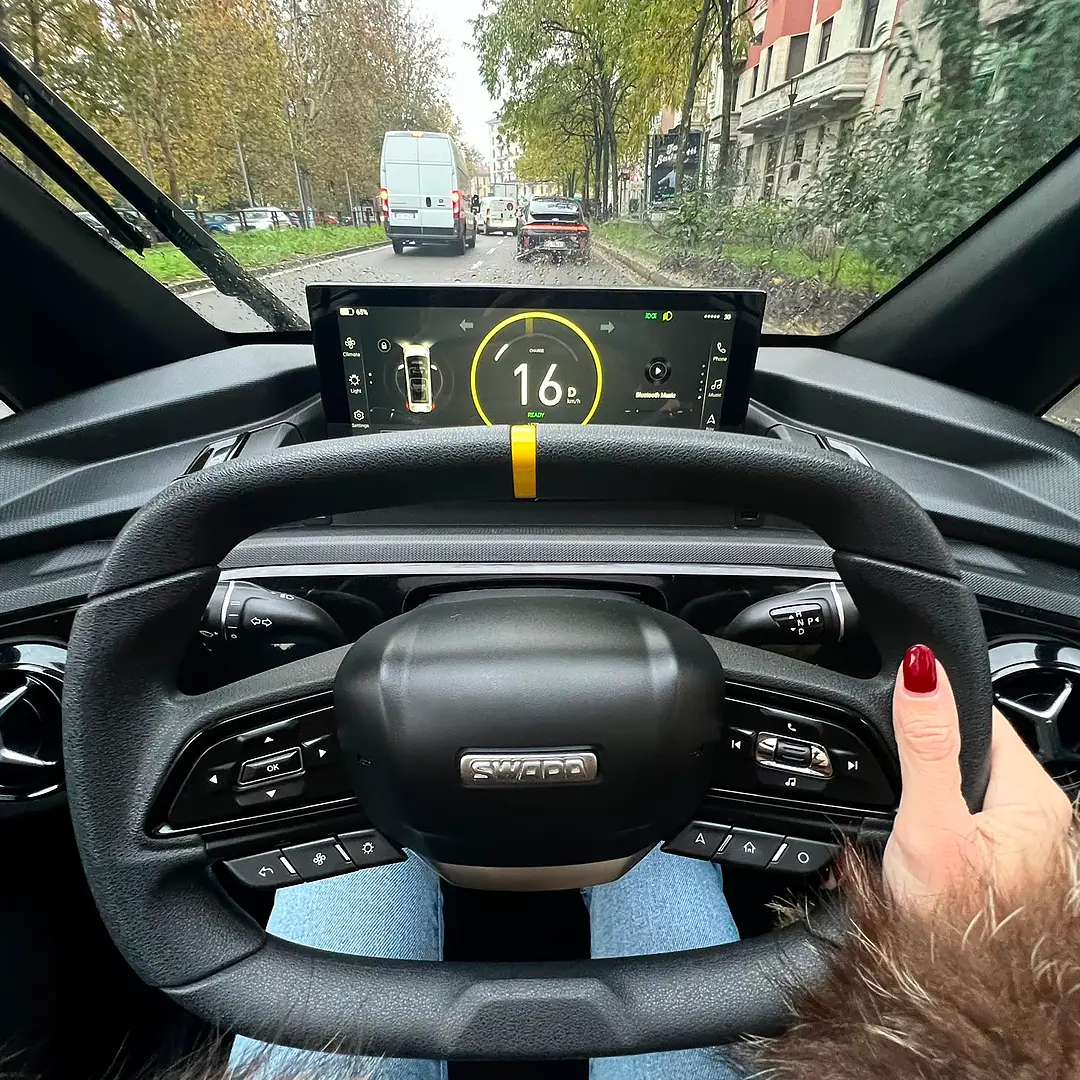 L’écran tactile centralise la navigation, les réglages du véhicule et les options de divertissement, plaçant la SWAPA Zip au cœur de la mobilité connectée moderne.
